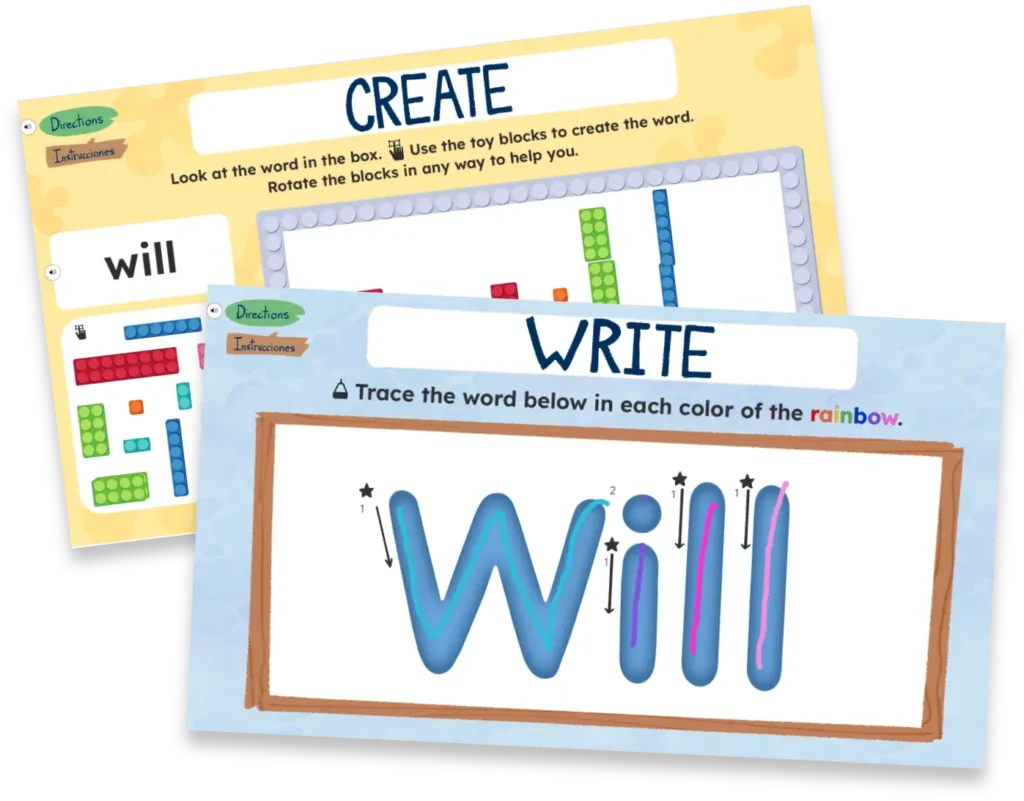 Lessons provide modeling and multiple practice formats, including hands-on activities and games.
