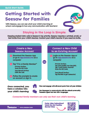 The Seesaw team wants to be sure you and your teachers are set up for success. Below you will find all of our most popular and helpful tools in one place – quick start guides, training kits and other helpful links.